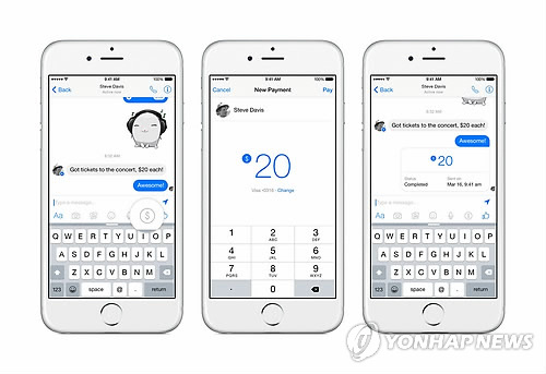 페이스북 메신저에 송금 기능…모바일 결제 분야 파란(종합)