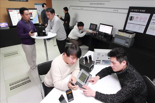 약 100㎡ 크기인 테스트랩은 이동통신중계기·초소형기지국(펨토셀)같은 네트워크 장비와 음성·영상 LTE 무전기, D2D(단말간 직접 통신) 등 재난안전망(PS-LTE)에 필요한 핵심 단말기 20여대를 갖췄다.