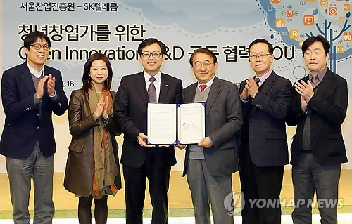 (서울=연합뉴스) 전성훈 기자 = SK텔레콤[017670]은 18일 서울산업진흥원과 청년 창업 활성화를 위한 협약을 체결하고 용산에 있는 청년창업플러스센터에 '모바일 테스트베드'를 설치했다고 밝혔다.