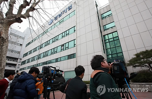 | △ 압수수색 진행 중인 경남기업 (서울=연합뉴스) 박동주 기자 = 자원개발 비리 의혹을 수사중인 서울중앙지검 특수1부가 18일 서울 동대문구 답십리동 경남기업 본사를 압수수색 중인 가운데 이날 오전 취재진이 경남기업 본사 앞에서 대기하고 있다. |