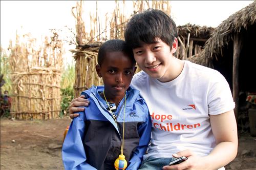 | △ (서울=연합뉴스) 월드비전 기아체험 홍보대사 가수 2PM 멤버 준호가 에티오피아 후원아동을 위한 식수펌프를 선물했다. 사진은 준호와 준호가 후원하는 에티오피아 아동 펠메타군. 2015.3.18 << 월드비전 제공 >> |