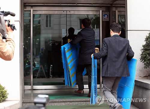 | △ 검찰, 경남기업 압수수색 (서울=연합뉴스) 박동주 기자 = 자원개발 비리 의혹을 수사중인 서울중앙지검 특수1부가 18일 서울 동대문구 답십리동 경남기업 본사에 대한 압수수색을 시작하며 압수품을 담을 상자를 들고 건물 안으로 들어서고 있다. 2015.3.18 pdj6635@yna.co.kr |