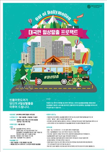 (서울=연합뉴스) 고유선 기자 = 제일모직 빈폴아웃도어는 도시를 떠나 자유를 만끽할 수 있도록 투어버스와 행사비 등을 지원하는 '일상탈출' 행사를 한다고 19일 밝혔다.