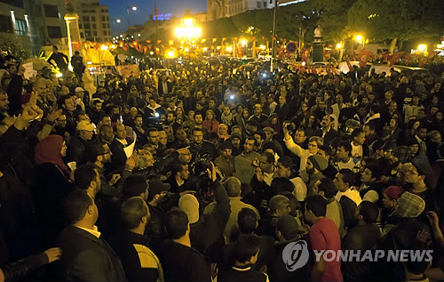 | △ 튀니지 총격 테러…관광객 등 21명 사망 (AP=연합뉴스) 18일(현지시간) 낮 튀니지의 수도 튀니스의 바르도 국립박물관에 침입한 무장 괴한들이 총기를 난사해 외국인 관광객 등 최소 21명의 목숨을 빼앗은 가운데, 시민들이 튀니스의 중앙 대로에 운집해 희생자들과의 연대감을 표시하며 이날 테러를 비난하고 있다. bulls@yna.co.kr |