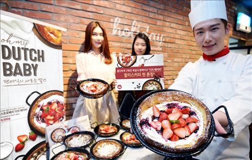 '더치 베이비'는 팬에 재료를 올려 화력으로 굽는 일반 팬케이크와 달리 오븐에 넣고 굽는 제품으로, 쫄깃한 식감의 팬케이크와 다양한 토핑이 어우러진 것이 특징이라고 회사 측은 설명했다.