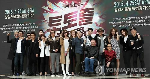 1990년대 가요계의 황금기를 누린 스타들이 19일 서울 영등포구 타임스퀘어 아트리움에서 '토토즐 슈퍼콘서트' 제작발표회를 열고 합동 공연에 대한 의욕을 보였다.