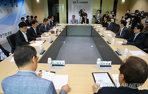 | △ 정부3.0 추진위원회 회의 (서울=연합뉴스) 황광모 기자 = 서울 도렴동 정부청사별관에서 열린 국무총리 소속 '정부3.0 추진위원회' 회의에서 민·관 위원들이 송희준 정부3.0 추진위원회 위원장의 모두 발언을 듣고 있다. 정부3.0이란 정부나 공공기관이 보유한 정보를 적극 개방해 국민이 이를 쉽게 활용할 수 있게 하고, 공공기관 사이 칸막이를 없애 수요자 맞춤형 서비스를 제공하는 정부 운영 패러다임을 뜻한다. (연합뉴스 자료사진) |