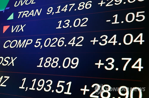 스탠더드 앤드 푸어스(S&P) 500지수는 18.79포인트(0.90%) 오른 2,108.06에, 나스닥 종합지수는 34.04포인트(0.68%) 뛴 5,026.42에 각각장을 마쳤다.