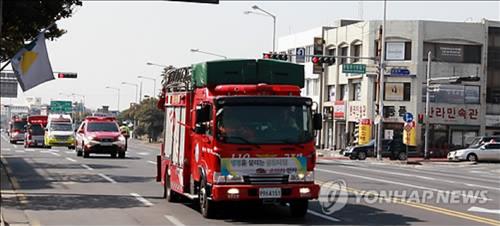 <사진설명: 지난 16일 오후 제주시 오라동에서 열린 '소방차 길 터주기' 훈련. 자료사진>