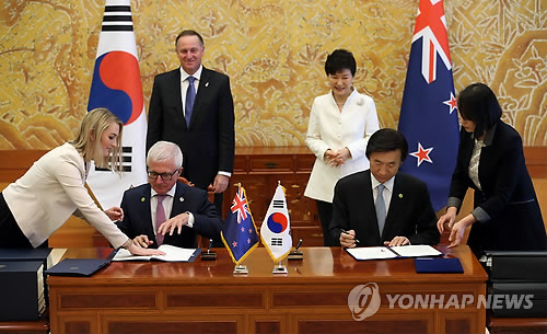 (서울=연합뉴스) 김지훈 기자 = 한국과 뉴질랜드가 작년 11월 타결한 자유무역협정(FTA)에 정식 서명했다.