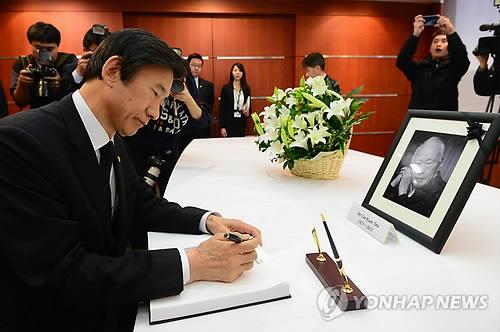 (서울=연합뉴스) 김효정 기자 = 윤병세 외교부 장관이 23일 오후 서울의 주한 싱가포르 대사관을 찾아 리콴유(李光耀) 전 싱가포르 총리의 타계를 애도했다.