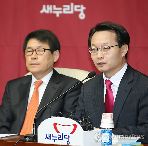 | △ 조해진 원내수석부대표 모두발언 (서울=연합뉴스) 백승렬 기자 = 새누리당 조해진 원내수석부대표가 24일 국회에서 열린 원내대책회의에서 모두발언하고 있다. |