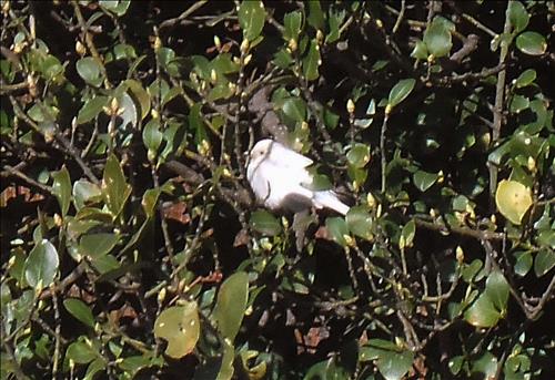24일 옥천군 이원면 현남마을서 조경업체를 운영하는 황인준(49)씨는 최근 마을의 한 사철나무에 앉아있는 흰 참새 1마리를 발견, 휴대전화 카메라로 촬영했다.