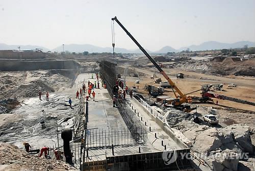 | △ (AP=연합뉴스 자료사진) 에티오피아가 나일 강 상류에 건설 중인 '나흐다(르네상스)' 댐의 모습 |