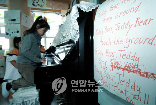 | △ 소아정신의학과 전문의 10명 중 8명은 영유아를 대상으로 하는 조기교육의 부정적인 영향을 우려하는 것으로 나타났다. 사진은 엄마보다 마더를 먼저 배우는 아이들. (연합뉴스 자료사진) |