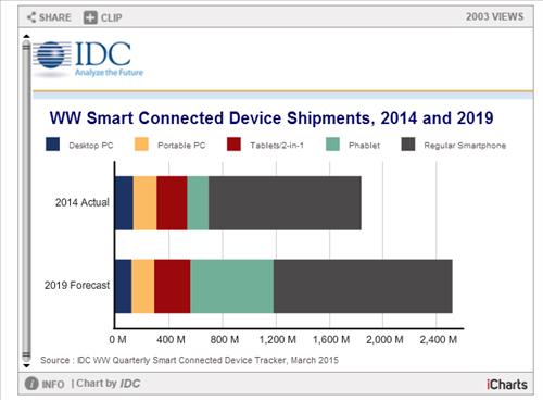 '스마트 커넥티드 디바이스'란 스마트폰과 PC(데스크톱·노트북), 태블릿을 통칭하는 용어로 IDC가 업계 분석을 위해 만든 것이다.