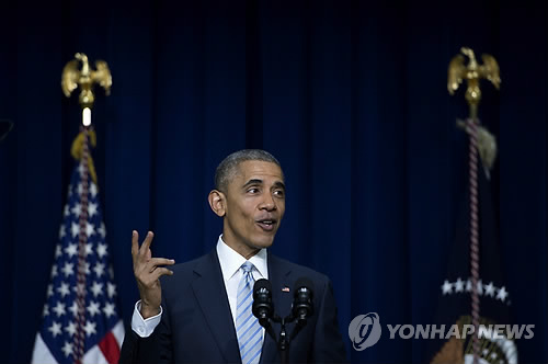 | △ (EPA=연합뉴스) 버락 오바마 미국 대통령이 25일(현지시간) 워싱턴 백악관에서 오바마케어(건강보험개혁법) 시행 5주년을 맞아 연설하고 있다. |