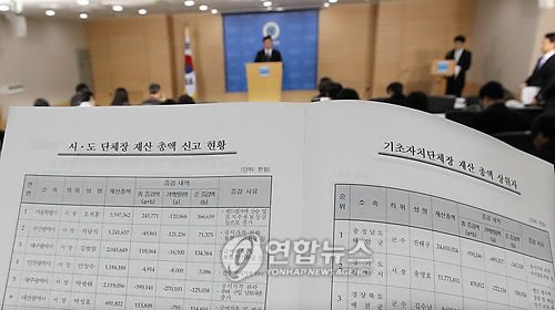 (서울=연합뉴스) 이승우 정윤섭 한지훈 기자 = 지난해 경기불황 속에서도 우리나라 고위공직자 10명 가운데 7명이 재산을 불린 것으로 나타났다.