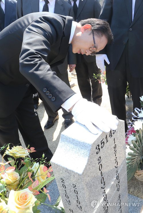 이 전 대통령은 방명록에 '여러분들의 숭고한 희생을 우리 모두 영원히 잊지 않을 것입니다"라고 적었다.