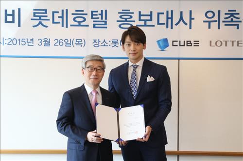 (서울=연합뉴스) 김희선 기자 = 롯데호텔은 가수 겸 배우 비와 홍보모델 계약을 체결했다고 27일 밝혔다.
