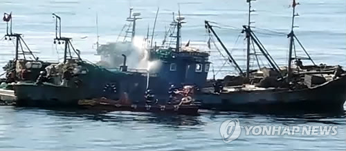 중국 어선은 기관실 일부가 불에 타 항해할 수 없는 상태로, 선단선이 예인해 석도항으로 귀항할 예정이다.