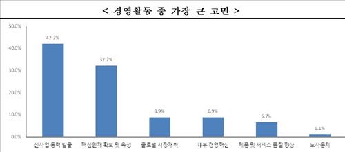 (서울=연합뉴스) 성혜미 기자 = 기업 CEO와 임원들의 가장 큰 고민은 '신사업 동력발굴'로 나타났다.