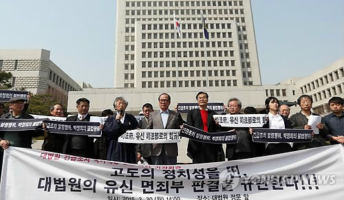 앞서 지난 26일 대법원은 최모씨가 국가를 상대로 낸 소송에서 "긴급조치권 행사는 고도의 정치성을 띤 국가행위로, 대통령은 개개인의 권리에 법적 의무를 지지 않는다"며 원고 패소 취지로 판결했다.