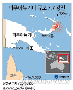 (시드니 AFP·신화=연합뉴스) 남태평양 파푸아뉴기니에서 29일(현지시간) 규모 7.5의 강진이 발생했다.
