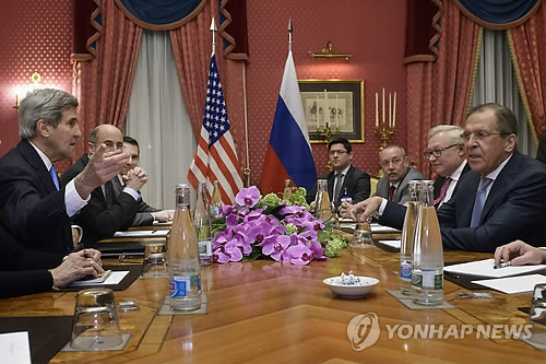 | △ 이제 마무리지어야지요 (AP=연합뉴스) 이란 핵협상 타결 시한을 하루 앞둔 30일(현지시간) 이란과 주요 6개국 외무장관이 스위스 로잔에서 전체회의를 연다. 이는 이란 핵 협상의 합의가 가까워졌다는 신호로 해석된다. 사진은 존 케리 미국 국무장관(왼쪽)과 세르게이 라프로프 러시아 외무장관(오른쪽)이 28일 로잔의 회담장에서 회의 시작을 기다리며 얘기를 나누고 있는 모습. |