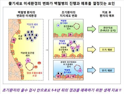 특히 이 과정에서 급성 백혈병 환자마다 줄기세포 지지세포들이 재편되는 정도가 다르며, 이런 차이를 통해 급성백혈병 환자가 치료 후 장기간 완치상태를 유지할지 또는 재발위험이 클지를 예측할 수 있다고 연구진은 밝혔다.