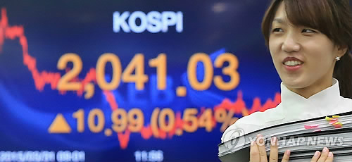 코스피는 이날 12.27포인트(0.60%) 오른 2,042.31로 출발한 뒤 강세를 유지하며 전날보다 10.99포인트(0.54%) 오른 2,041.03으로 마감했다.