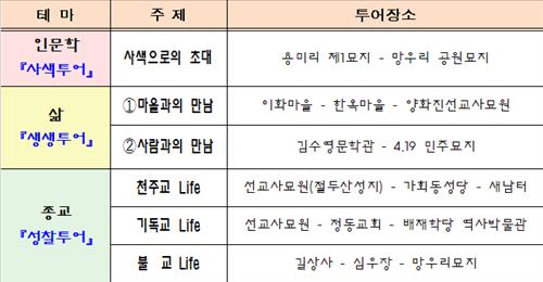 프로그램은 인문학 사색투어, 삶과 생생투어, 종교와 성찰투어 등 3가기 주제로 이뤄진다.