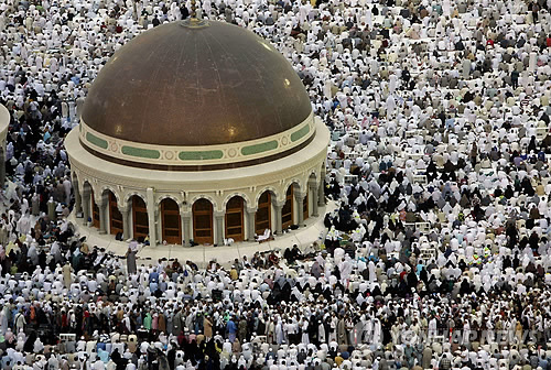 | △ 앞으로 이슬람이 다른 주요 종교보다 빨리 성장해 2050년에는 이슬람교도가 기독교도를 거의 따라잡을 것이라는 전망이 나왔다. 사진은 사우디 아라비아의 이슬람교 성지 메카소재 중앙 모스크에 몰려든 무슬림들이 일몰 시각에 맞춰 기도회 시작을 준비하고 있다. (AP=연합뉴스) Muslim pilgrims prepare to offer prayers at sunset at the Grand Mosque in the Muslim holy city of Mecca, Saudi Arabia, Thursday, Oct. 10, 2013. Every Muslim is required to perform the hajj, or pilgrimage, to Mecca at least once in his or her lifetime if able to do so. (AP Photo/Amr Nabil) |