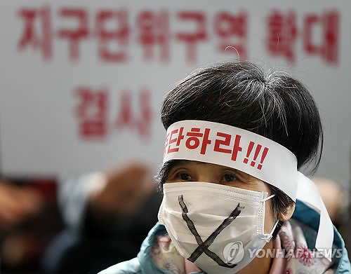 (서울=연합뉴스) 이정현 기자 = 구룡마을 정비사업부터 현대차그룹이 사들인 한국전력 부지 개발 문제까지 서울시 정책에 지속적으로 반대 의사를 표명해 온 강남구청장과 강남구민이 6일 서울시청에서 항의 시위를 벌이고 있다.