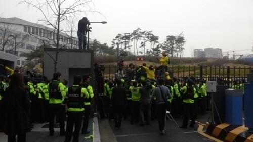 유족 일부가 출입문·담장을 넘자 경찰이 이들을 연행하는 과정에서 물리적 충돌이 발생했고, 밀고 당기는 과정에 여성 한 명이 실신해 119구급대에 의해 병원으로 후송되기도 했다.
