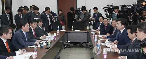 | △ 연말정산 보완대책 당정협의 발언하는 최경환 장관 (서울=연합뉴스) 이상학 기자 = 최경환 부총리 겸 기획재정부 장관(왼쪽 두번째)이 7일 오전 국회에서 열린 연말정산 보완대책 당정협의에서 모두 발언을 하고 있다. |