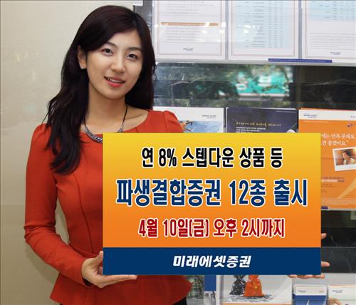(서울=연합뉴스) 차대운 기자 = 미래에셋증권[037620]은 주가연계증권(ELS)을 포함한 파생결합증권 상품 12종을 10일 오후 2시까지 1천500억원 규모로 판매한다고 7일 밝혔다.