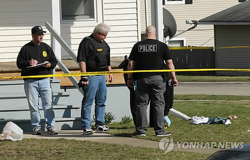 | △ 미국 일리노이 주 자이온 시 경찰이 사건 현장을 확인하고 있다.(AP=연합뉴스) |