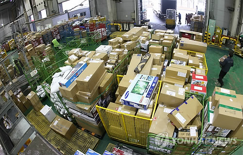 | △ 인천공항세관검사장에 쌓여 있는 해외직구 물품들. (연합뉴스 자료사진) |