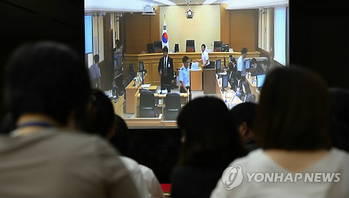 | △ 지난해 8월 세월호 재판이 영상 중계되는 경기도 안산 수원지법 안산지원 법정 (연합뉴스 자료사진) |