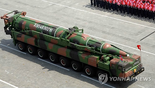 | △ 북한 대륙간탄도미사일(ICBM)인 KN-08 미사일 (EPA=연합뉴스 자료사진) |