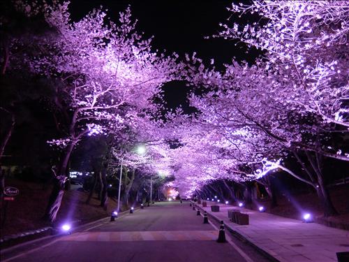 야간 개장을 하는 오후 6∼10시에는 조명과 함께 벚꽃을 감상할 수 있다.
