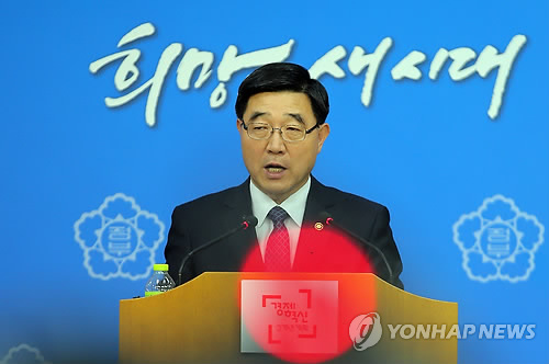 | △ 고용장관 "입법 등으로 노동시장 구조개선 계속 추진" (서울=연합뉴스) 이정훈 기자 = 이기권 고용노동부 장관이 9일 오후 정부서울청사에서 열린 노사정 대타협 결렬 관련 기자간담회에서 정부 입장을 발표하고 있다. |