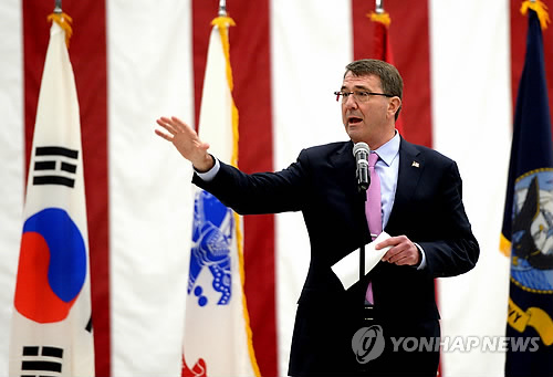 카터 장관은 이날 경기도 평택시 오산공군기지에 전용기로 도착한 직후 주한미군 장병과 가진 '타운홀 미팅' 형식의 만남에서 "미국이 지금 투자하고 있는 많은 새로운 군사력이 이곳 전구(아시아태평양 지역)에 투입될 것"이라고 밝혔다.
