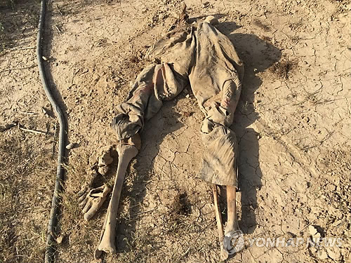 | △ 사람은 어디가고 유해만… (AP=연합뉴스) 수니파 극단주의 무장세력 이슬람국가(IS)가 장악했던 이라크 티크리트에서 발견된 이라크군 시신으로 보이는 유해. |