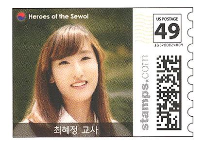 (뉴욕=연합뉴스) 이강원 특파원 = '세월호 참사' 때 많은 학생을 살리고 숨진 최혜정 단원고 교사와 박지영 세월호 승무원의 숭고한 희생정신을 기리는 미국 우표가 나왔다.