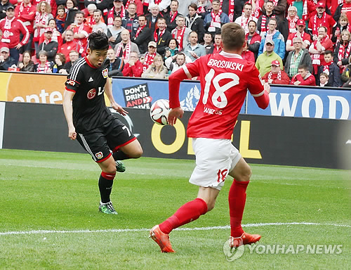 손흥민은 11일(현지시간) 독일 마인츠의 코파스 아레나에서 열린 2014-2015 독일프로축구 분데스리가 28라운드 마인츠05와의 원정 경기에서 전반 15분 선제골을 터뜨려 팀의 3-2 승리를 이끌었다.