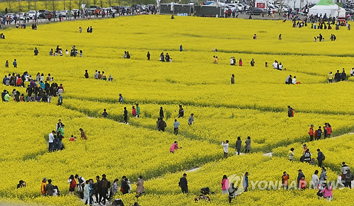 | △ 유채꽃 축제 '북적' (부산=연합뉴스) 차근호 기자 = 12일 오후 부산시 강서구 대저 생태공원에서 열린 제4회 유채꽃 축제장이인파로 북적이고 있다. 2015.4.12 ready@yna.co.kr |