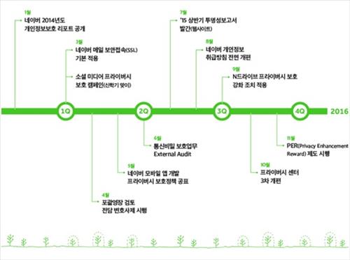 이에 따라 ▲ 모바일 앱 개발 프라이버시 보호정책 공표(5월) ▲ 네이버 개인정보 취급방침 전면 개편(8월) ▲ N드라이브 프라이버시 보호 강화(9월) ▲ 네이버 프라이버시센터 3차 개편(10월) ▲ 프라이버시 강화 보상제도(11월) 등을 시행할 계획이다.