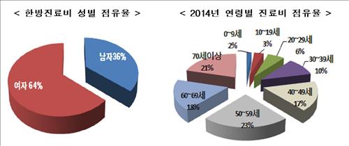 (서울=연합뉴스) 김병규 기자 = 한방병원이나 한의원 등 한방 의료기관에 지급된 진료비의 60% 가량은 50대 이상의 장ㆍ노년층에 집중된 것으로 나타났다.